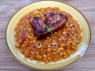 Iahnie de fasole servita cu ciolan de porc dezosat, bacon si ceapa rosie murata - 300g/250g